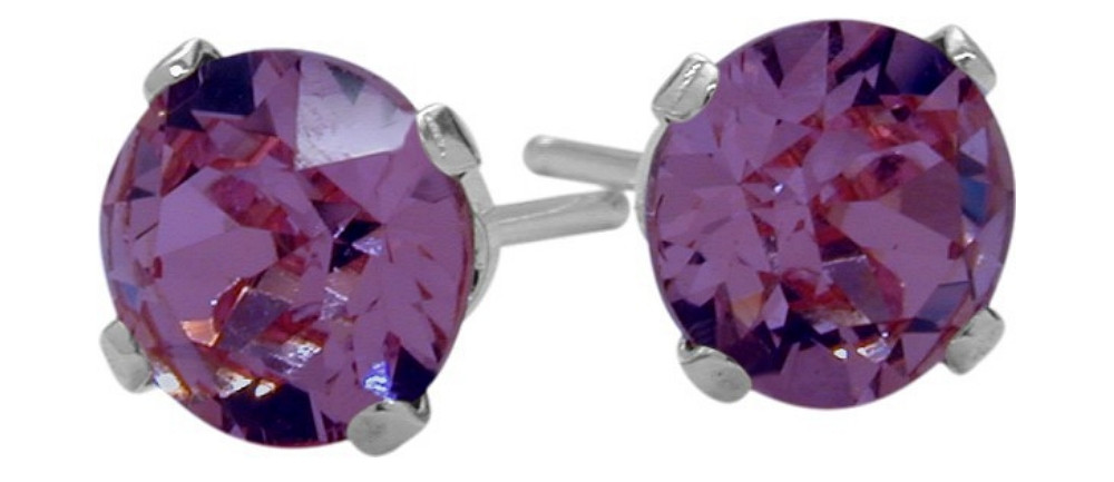 These beautiful round cut white gold, genuine Amethyst stud earrings are crafted of 14 karat gold. Measuring 0.16 inches (4mm) high and 0.16 inches (4mm) wide. The butterfly backings ensure secure closure and easy wearing.