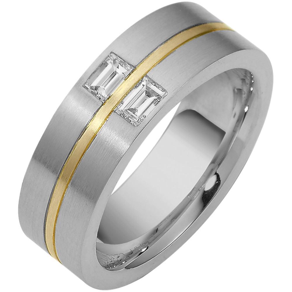 Enjoy the masterful smooth design of this beautifully detailed two-tone gold designer band. Measuring 5mm wide, this comfort fit band is the perfect blend of style and sophistication. The ultimate in craftmanship and quality. NOTE: This wedding band is custom made to order. Therefore please allow 5-7 business days to manufacture before shipment.This ring is also available in a variation of metals, colors & widths. Available metals include all gold types, platinum, palladium, titanium and steel. Please contact customer service with any questions, for a free ring sizer or any special order requests.