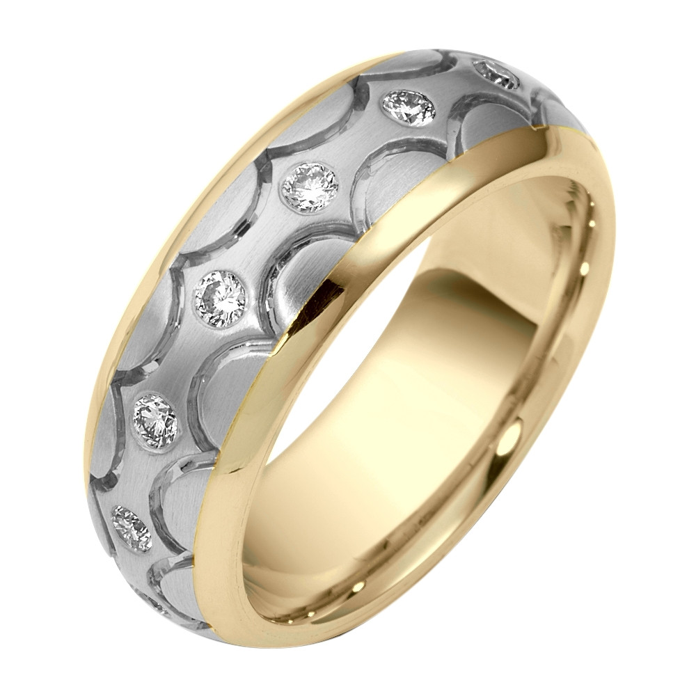 Enjoy the exquisite design of this beautifully detailed wave style band. Measuring 8mm wide, this comfort fit band is the perfect blend of style and tradition. The ultimate in craftmanship and quality. NOTE: This designer wedding band is custom made to order. Therefore please allow up to 2 weeks to manufacture before shipment. For rush shipments please contact customer service. This ring is also available in a variation of metals, colors & widths. Available metals include all gold types, platinum, palladium, titanium and steel. Please contact customer service with any questions, for a free ring sizer or any special order requests.Feel free to e-mail customer service with any questions or comments.