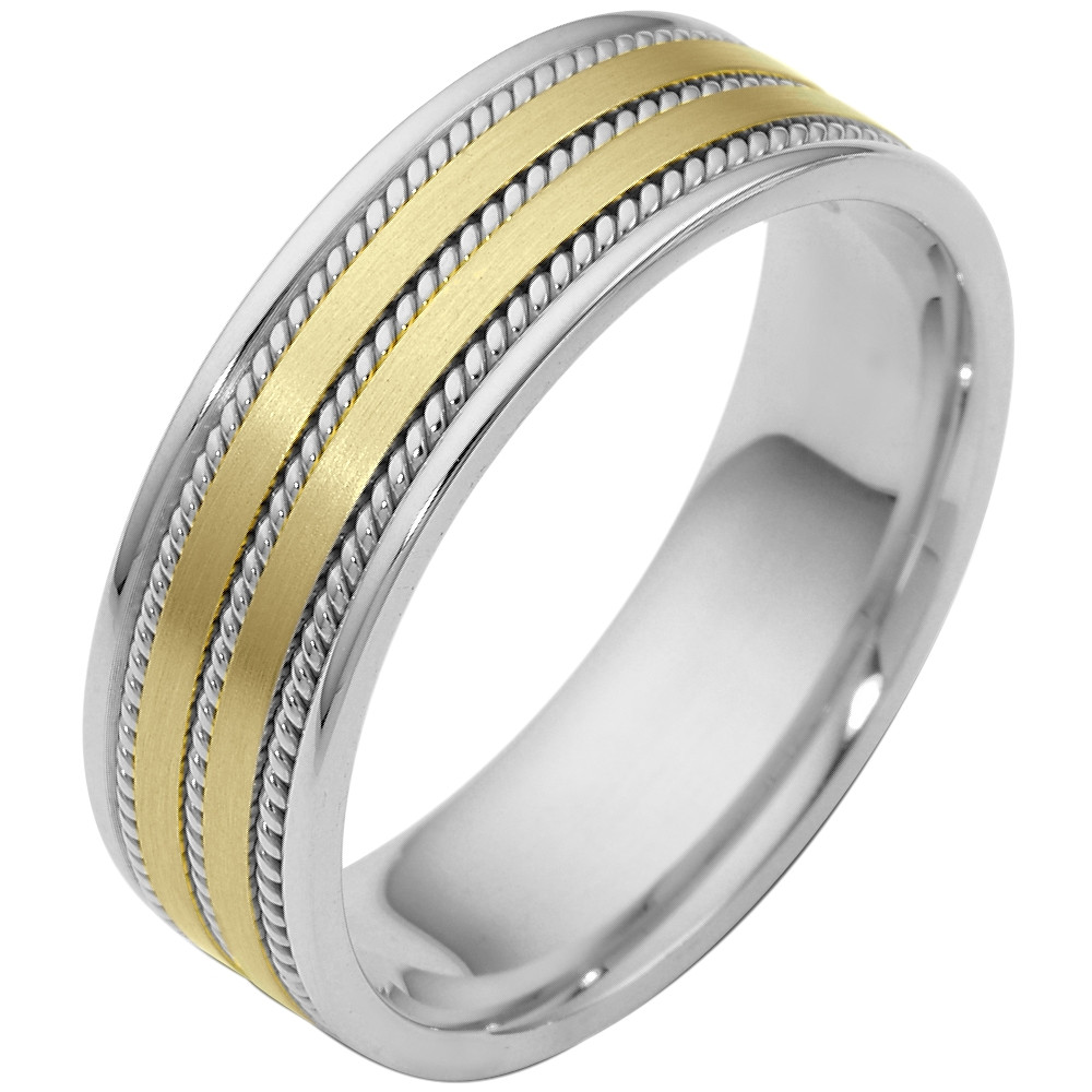 Enjoy the masterful smooth design of this beautifully detailed two-tone gold designer band. Measuring 7mm wide, this comfort fit band is the perfect blend of style and sophistication. The ultimate in craftmanship and quality.