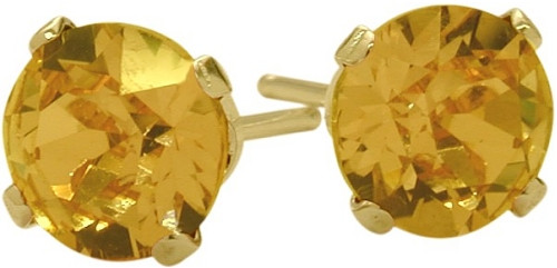 These beautiful round cut yellow gold, genuine Citrine stud earrings are crafted of 14 karat gold. Measuring 0.16 inches (4mm) high and 0.16 inches (4mm) wide. The butterfly backings ensure secure closure and easy wearing.