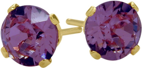 These beautiful yellow gold, genuine Amethyst stud earrings are crafted of 14 karat gold. Measuring 0.2 inches (5mm) high and 0.2 inches (5mm) wide. The butterfly backings ensure secure closure and easy wearing.