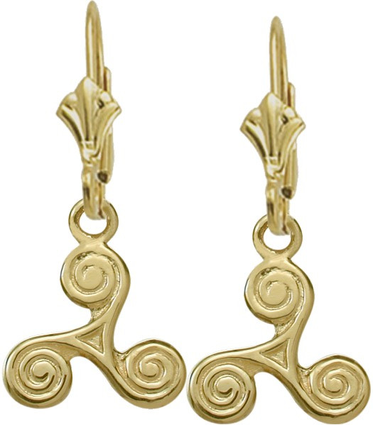 These high polish Triskele Celtic leverback earrings are made of 10 karat yellow gold and measure 16.5mm or 0.66 inches in height and 14mm or 0.56 inches wide.