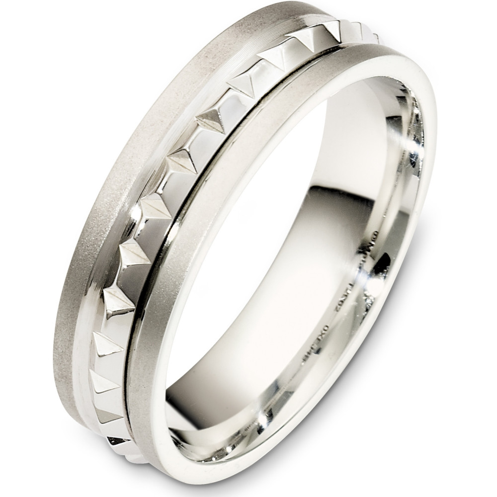 14 Karat 6mm White Gold Multi Texture Wedding Band Ring
