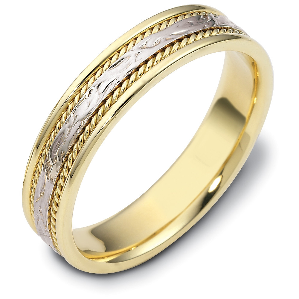Enjoy the masterful smooth design of this beautifully detailed two-tone gold designer band. Measuring 7mm wide, this comfort fit band is the perfect blend of style and sophistication. The ultimate in craftmanship and quality. NOTE: This wedding band is custom made to order. This ring is available in a variation of metals, colors & widths. Available metals include all gold types, platinum, palladium, titanium and steel. Please contact customer service with any questions, for a free ring sizer or any special order requests.