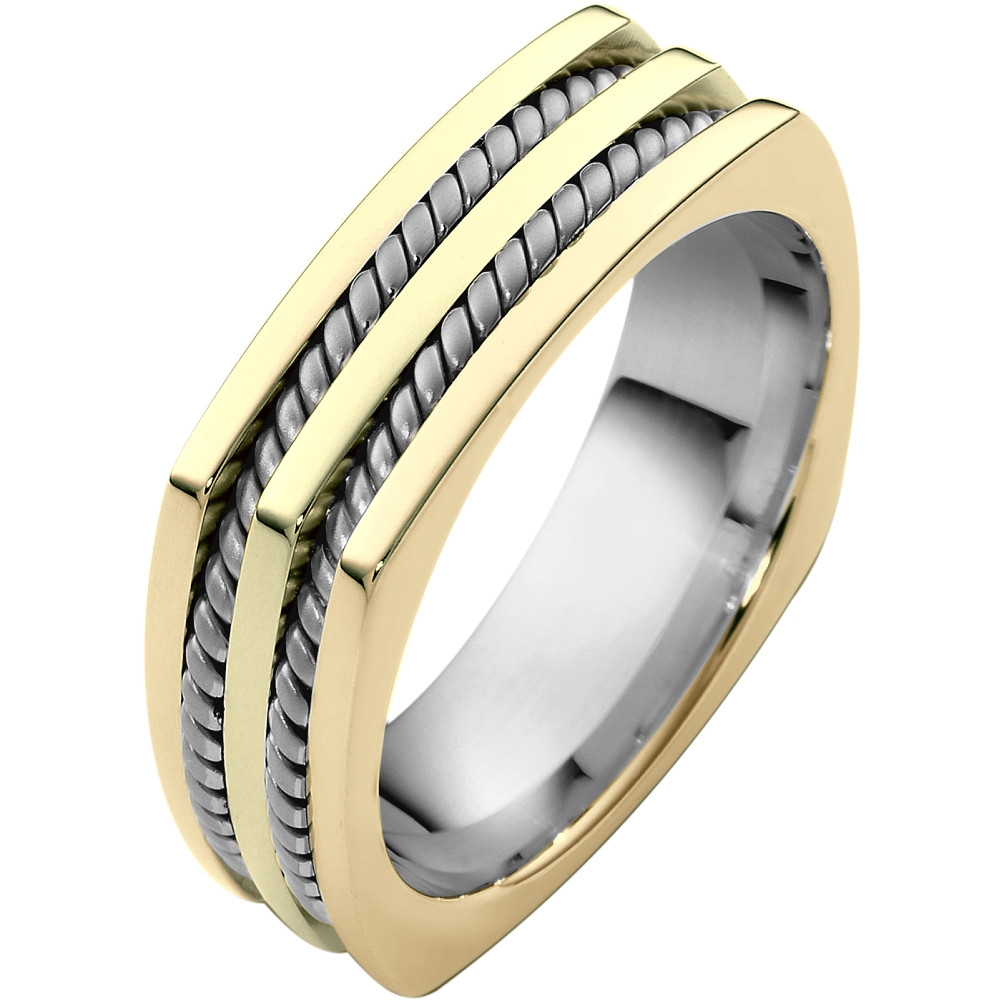 Enjoy the masterful smooth design of this beautifully detailed two-tone gold designer band. Measuring 5mm wide, this comfort fit band is the perfect blend of style and sophistication. The ultimate in craftmanship and quality. NOTE: This wedding band is custom made to order. Therefore please allow 5-7 business days to manufacture before shipment.This ring is also available in a variation of metals, colors & widths. Available metals include all gold types, platinum, palladium, titanium and steel. Please contact customer service with any questions, for a free ring sizer or any special order requests.