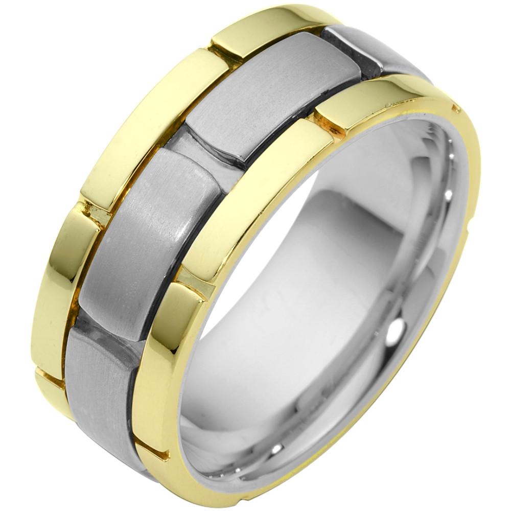 14 Karat Two-Tone Gold Link Style Comfort Fit Wedding Band Ring