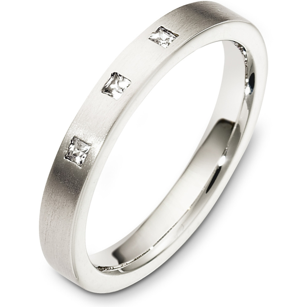 This designer white gold band is definitely a masterpiece. 3 sparkling SI clarity, GH color brilliant diamonds totaling 0.09 carats adorn the band. Measuring 3mm wide, this comfort fit band will definitely be the talk of the town. The ultimate in craftmanship and quality. NOTE: This wedding band is custom made to order. Therefore please allow 8-10 business days to manufacture before shipment. If you have any questions, comments or would like to receive a free ring sizer, please email customer service
