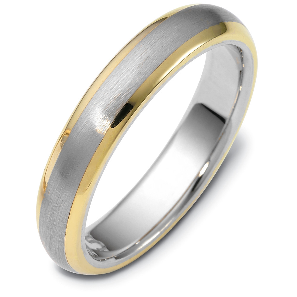 Enjoy the masterful smooth design of this beautifully detailed two-tone gold designer band. Measuring 4.5mm wide, this comfort fit band is the perfect blend of style and sophistication. The ultimate in craftmanship and quality. NOTE: This wedding band is custom made to order. Therefore please allow 8-10 business days to manufacture before shipment. This ring is also available in a variation of metals, colors & widths. Available metals include all gold types, platinum, palladium, titanium and steel. Please contact customer service with any questions, for a free ring sizer or any special order requests.