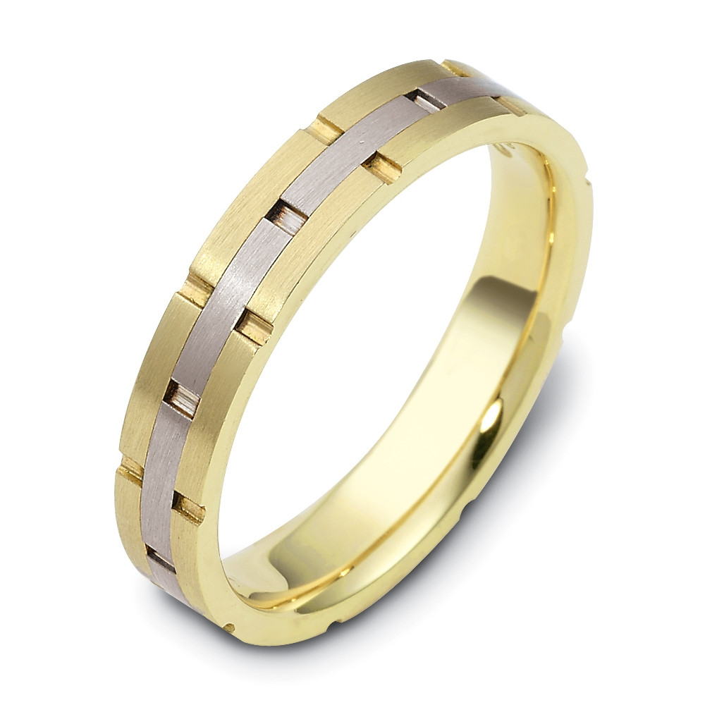 Enjoy the masterful smooth design of this beautifully detailed titanium and yellow gold band. Measuring 4mm wide, this comfort fit band is the perfect blend of style and sophistication. The ultimate in craftmanship and quality. NOTE: This wedding band is custom made to order. Therefore please allow 8-10 business days to manufacture before shipment. This ring is also available in a variation of metals, colors & widths.