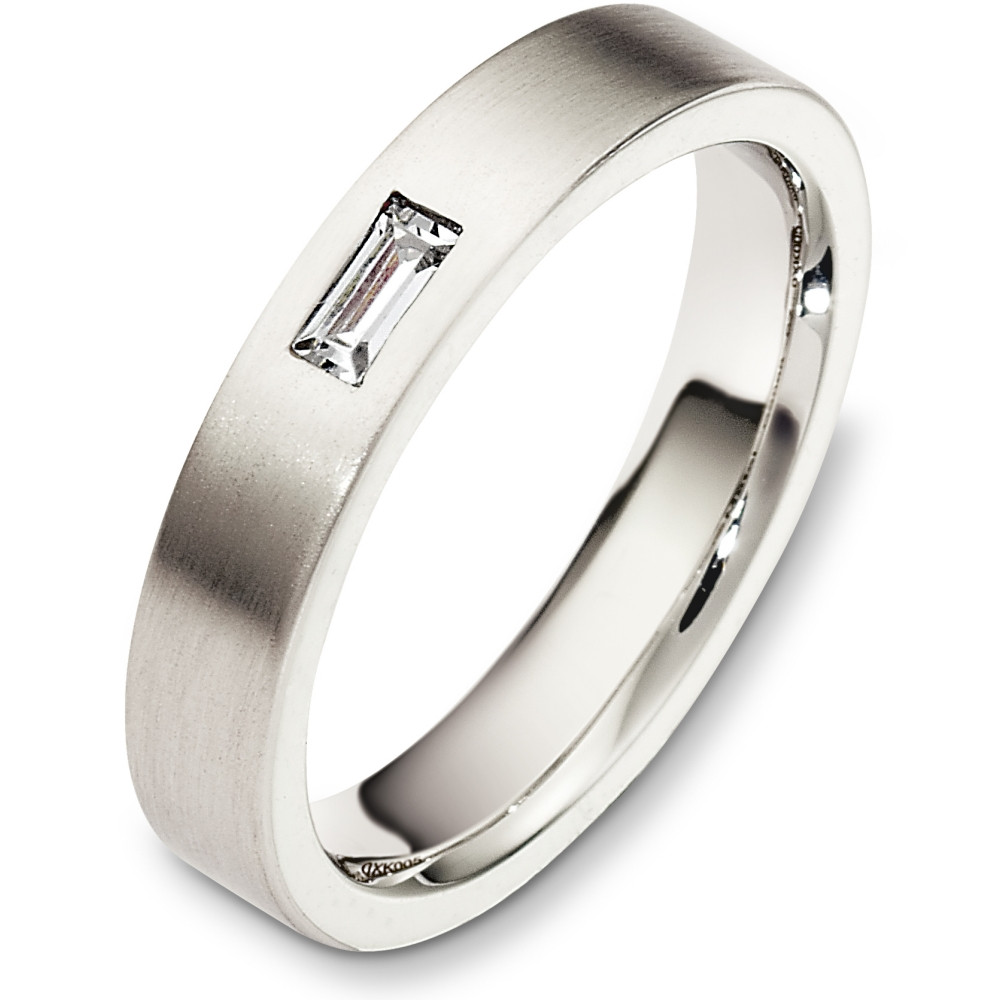 This designer white gold band is definitely a masterpiece. 1 sparkling SI clarity, GH color brilliant diamond totaling 0.15 carats adorn the band. Measuring 4mm wide, this comfort fit band will definitely be the talk of the town. The ultimate in craftmanship and quality. NOTE: This wedding band is custom made to order. Therefore please allow 8-10 business days to manufacture before shipment. If you have any questions, comments or would like to receive a free ring sizer, please email customer service