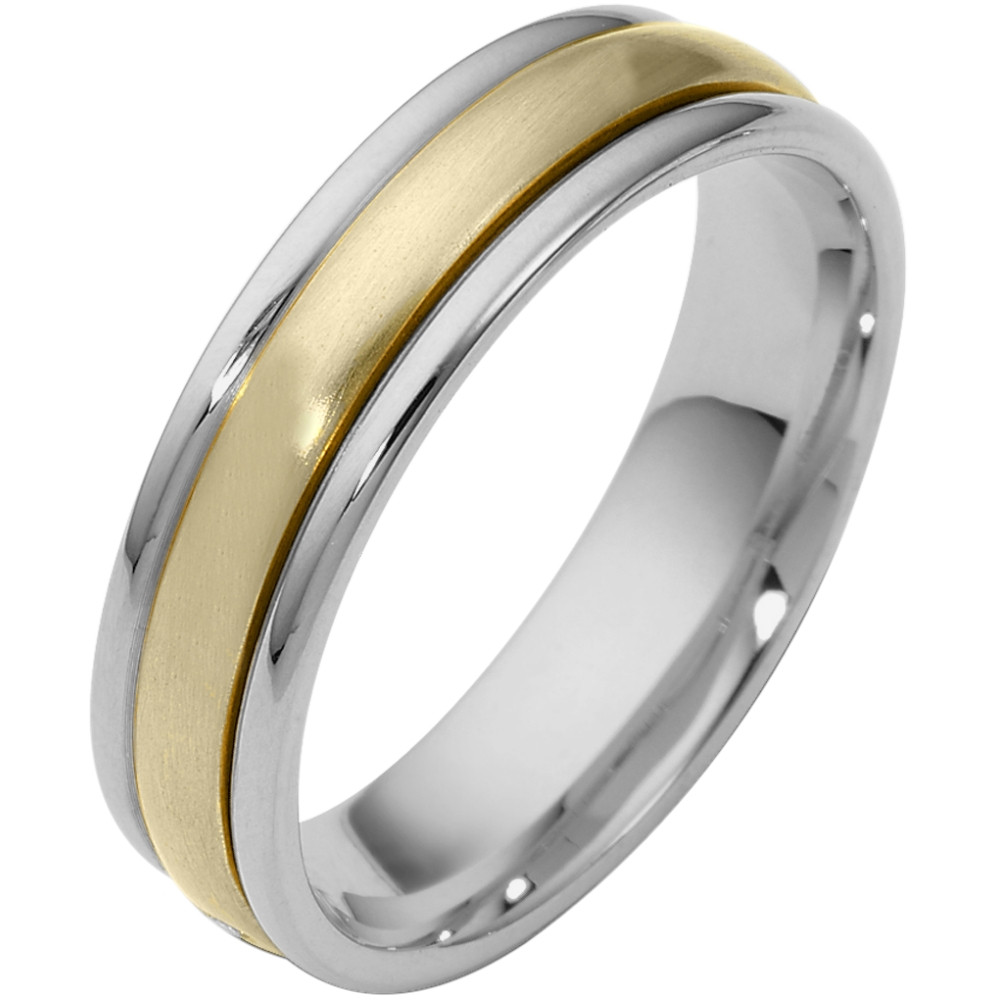 This designer two-tone gold SPINNING band is definitely a masterpiece. Measuring 4mm wide, this comfort fit band will definitely be the talk of the town. The ultimate in craftmanship and quality. NOTE: This wedding band is custom made to order.This ring is available in a variation of metals, colors & widths. Available metals include all gold types, platinum, palladium, titanium and steel. Please contact customer service with any questions, for a free ring sizer or any special order requests.