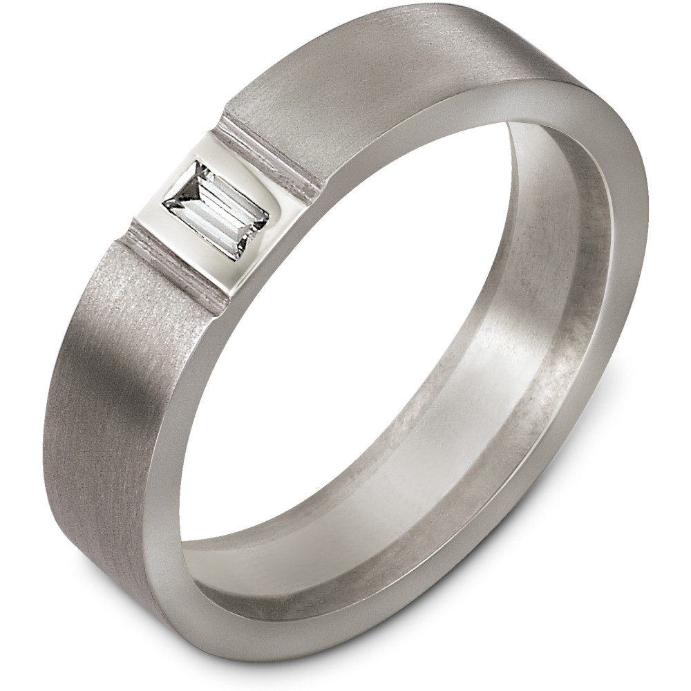 This designer white gold and titanium band is definitely a masterpiece. 1 sparkling SI clarity, GH color brilliant diamond totaling 0.15 carats adorn the band. Measuring 5.5mm wide, this comfort fit band will definitely be the talk of the town. The ultimate in craftmanship and quality. NOTE: This wedding band is custom made to order. Therefore please allow 8-10 business days to manufacture before shipment. If you have any questions, comments or would like to receive a free ring sizer, please email customer service