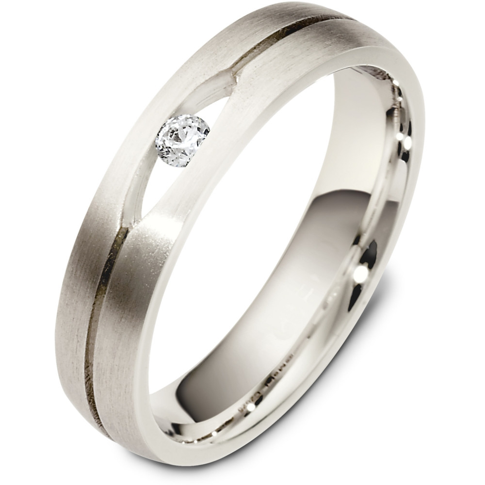 This designer white gold band is definitely a masterpiece. 1 sparkling SI clarity, GH color brilliant diamond totaling 0.08 carats adorn the band. Measuring 5mm wide, this comfort fit band will definitely be the talk of the town. The ultimate in craftmanship and quality. NOTE: This wedding band is custom made to order. Therefore please allow 8-10 business days to manufacture before shipment. If you have any questions, comments or would like to receive a free ring sizer, please email customer service