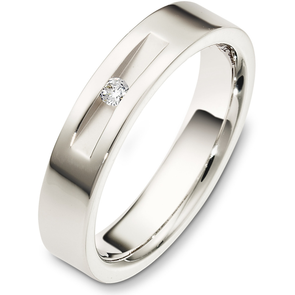 This designer white gold band is definitely a masterpiece. 1 sparkling SI clarity, GH color brilliant diamond totaling 0.06 carats adorn the band. Measuring 5mm wide, this comfort fit band will definitely be the talk of the town. The ultimate in craftmanship and quality. NOTE: This wedding band is custom made to order. Therefore please allow 8-10 business days to manufacture before shipment. If you have any questions, comments or would like to receive a free ring sizer, please email customer service