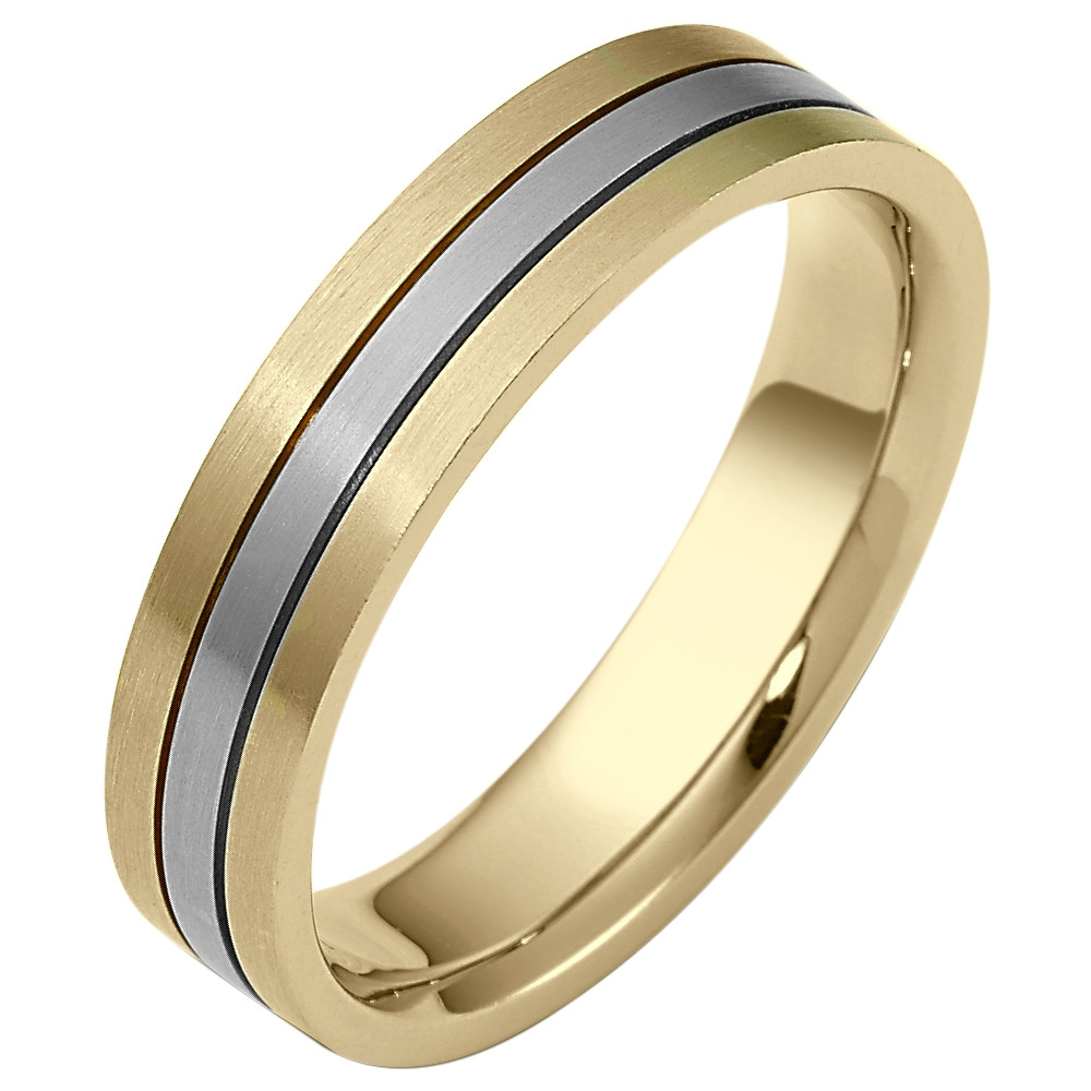 Enjoy the masterful smooth design of this beautifully detailed two-tone gold designer band. Measuring 6mm wide, this comfort fit band is the perfect blend of style and sophistication. The ultimate in craftmanship and quality. NOTE: This wedding band is custom made to order. This ring is also available in a variation of metals, colors & widths. Available metals include all gold types, platinum, palladium, titanium and steel. Please contact customer service with any questions, for a free ring sizer or any special order requests.