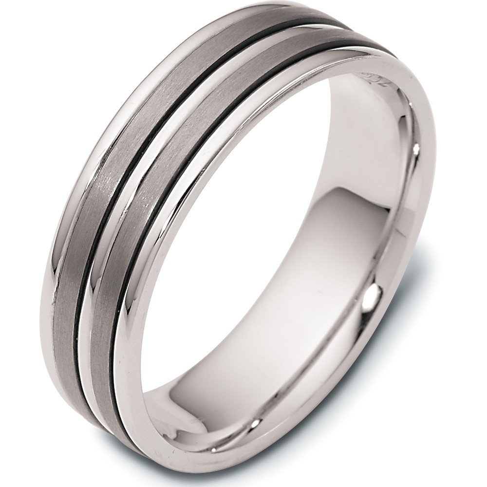 Enjoy the high quality and stylish appeal of this titanium & white gold wedding band. Measuring 6.5mm wide, this comfort fit wedding band is definitely an eye catcher. The ultimate in craftmanship and quality. NOTE: This wedding band is custom made to order. Therefore please allow 8-10 business days to manufacture before shipment. This ring is also available in a variation of metals, colors & widths. Available metals include all gold types, platinum, palladium, titanium and steel. Please contact customer service with any questions, for a free ring sizer or any special order requests.