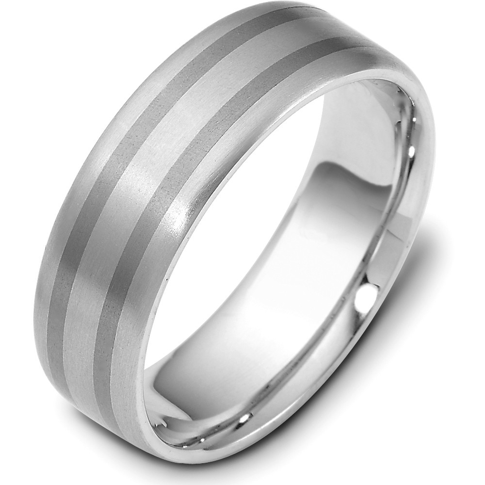 Enjoy the high quality and stylish appeal of this titanium & white gold wedding band. Measuring 6.5mm wide, this comfort fit wedding band is definitely an eye catcher. The ultimate in craftmanship and quality. NOTE: This wedding band is custom made to order. Therefore please allow 8-10 business days to manufacture before shipment. This ring is also available in a variation of metals, colors & widths. Available metals include all gold types, platinum, palladium, titanium and steel. Please contact customer service with any questions, for a free ring sizer or any special order requests.