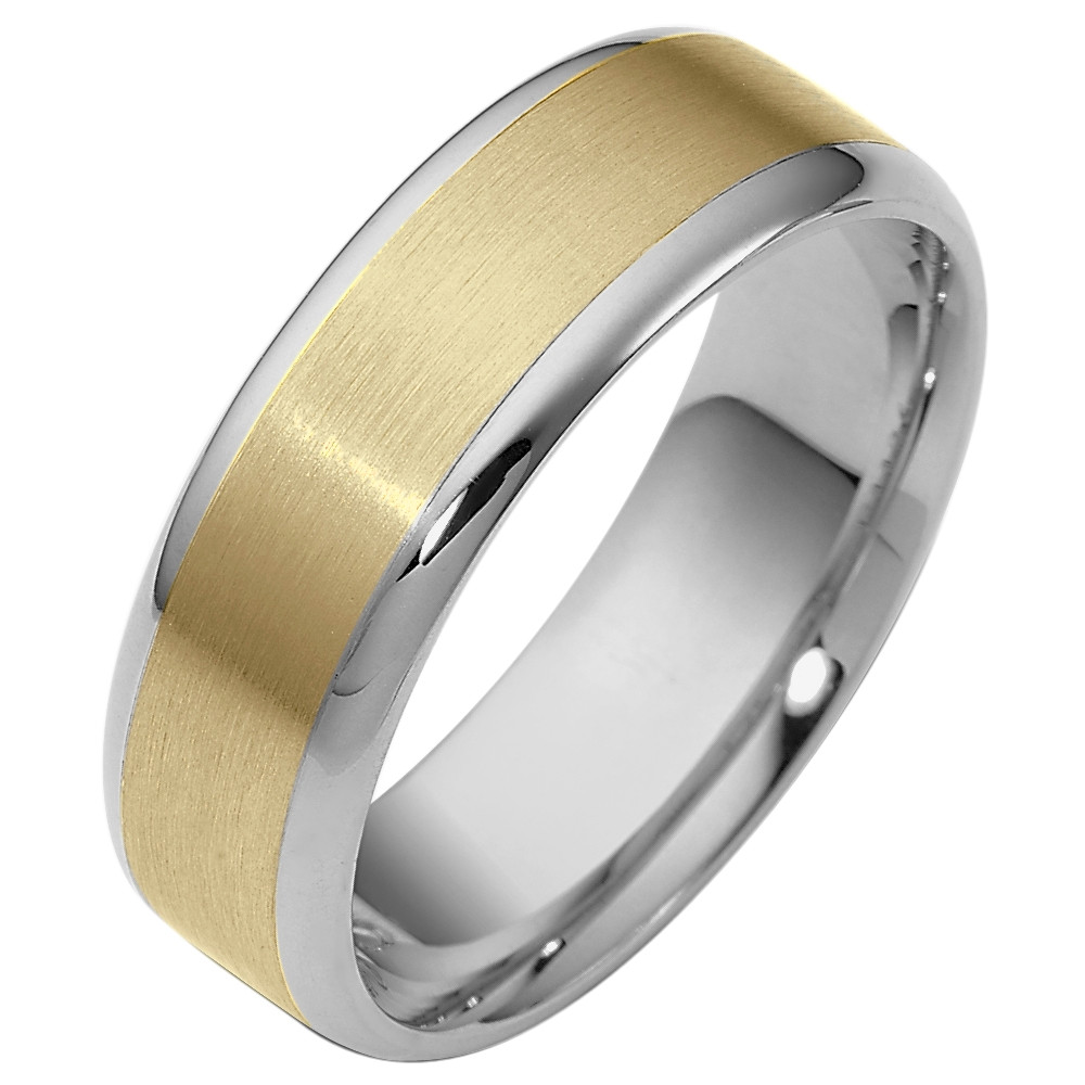 Enjoy the masterful smooth design of this beautifully detailed two-tone gold band. Measuring 6.5mm wide, this comfort fit band is the perfect blend of style and sophistication. The ultimate in craftmanship and quality. NOTE: This wedding band is custom made to order. Therefore please allow 8-10 business days to manufacture before shipment. This ring is also available in a variation of metals, colors & widths. Available metals include all gold types, platinum, palladium, titanium and steel. Please contact customer service with any questions, for a free ring sizer or any special order requests.