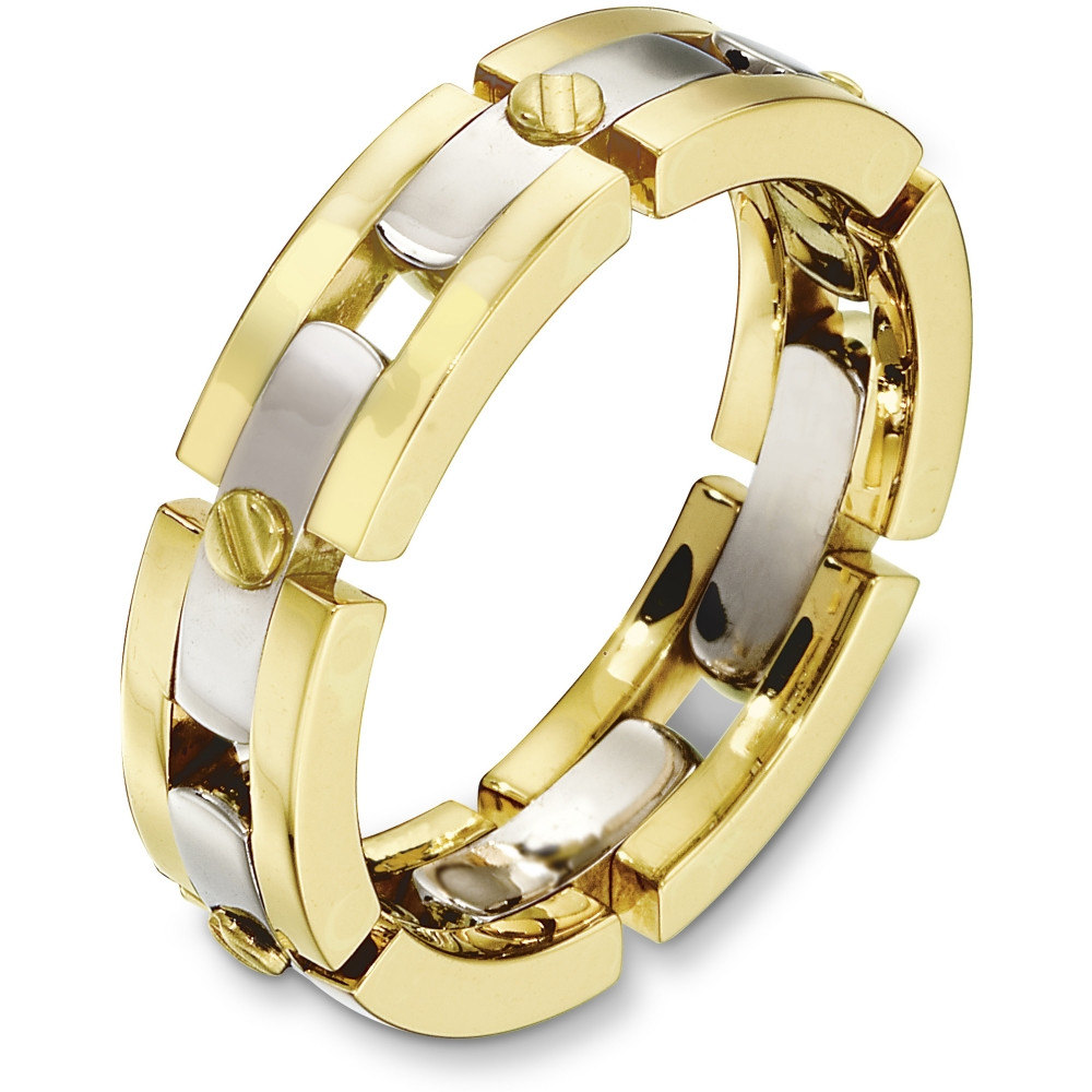 Enjoy the masterful smooth design of this beautifully detailed tri-color gold band. Measuring 6mm wide, this comfort fit band is the perfect blend of style and sophistication. The ultimate in craftmanship and quality. NOTE: This wedding band is custom made to order. Therefore please allow 5-7 business days to manufacture before shipment. Available in a variation of metals, colors & widths. Available metals include all gold types, platinum, palladium, titanium and steel. Please contact customer service with any questions, for a free ring sizer or any special order requests.