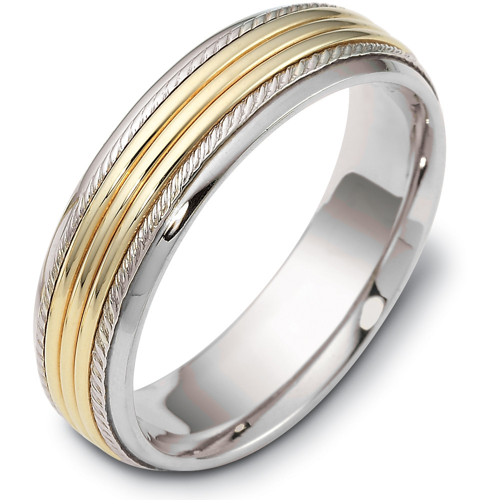 Enjoy the masterful smooth design of this beautifully detailed titanium and yellow gold band. Measuring 6mm wide, this comfort fit band is the perfect blend of style and sophistication. The ultimate in craftmanship and quality. NOTE: This wedding band is custom made to order. Therefore please allow 8-10 business days to manufacture before shipment. This ring is also available in a variation of metals, colors & widths.