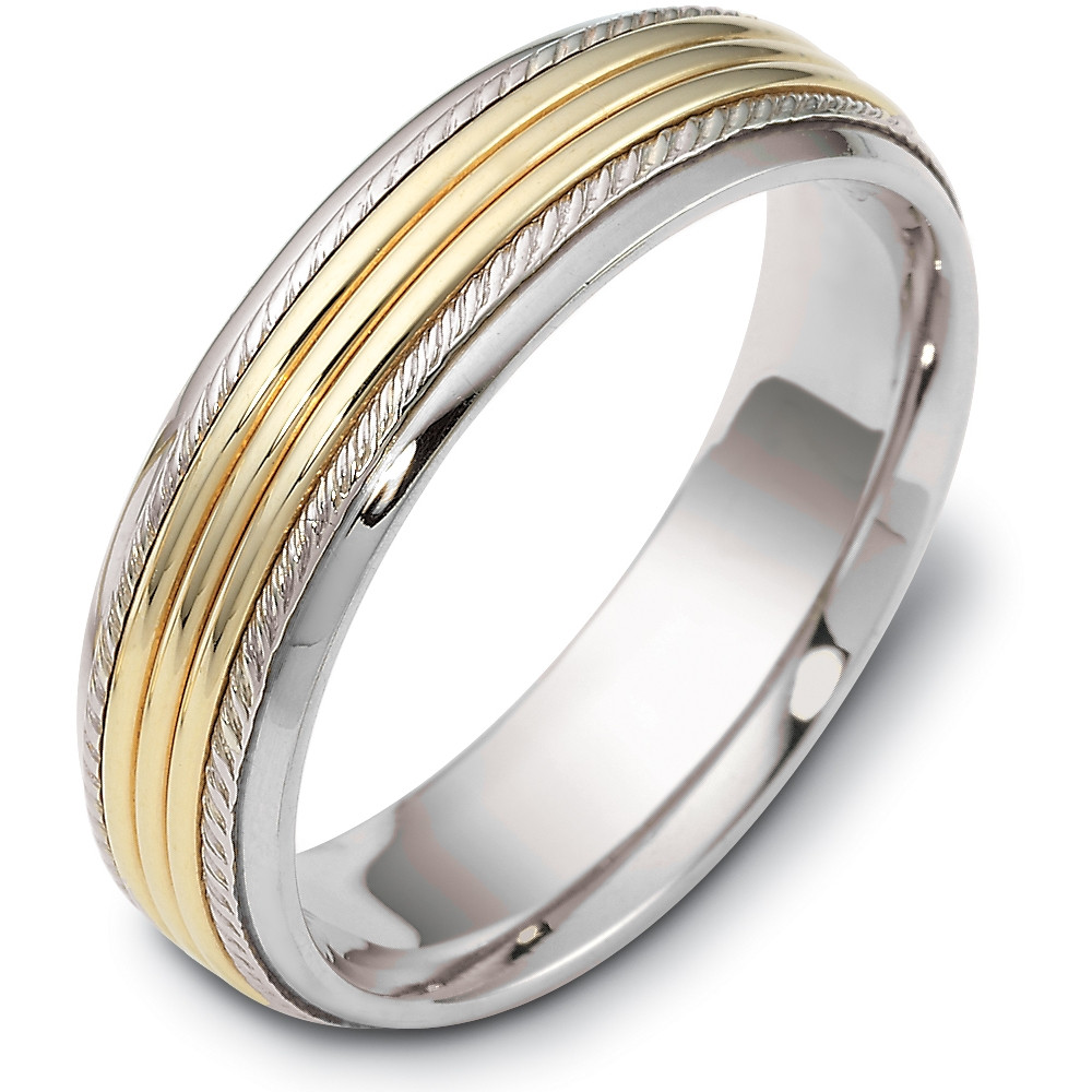 Enjoy the masterful smooth design of this beautifully detailed two-tone gold designer band. Measuring 6mm wide, this comfort fit band is the perfect blend of style and sophistication. The ultimate in craftmanship and quality. NOTE: This wedding band is custom made to order. This ring is also available in a variation of metals, colors & widths. Available metals include all gold types, platinum, palladium, titanium and steel. Please contact customer service with any questions, for a free ring sizer or any special order requests.