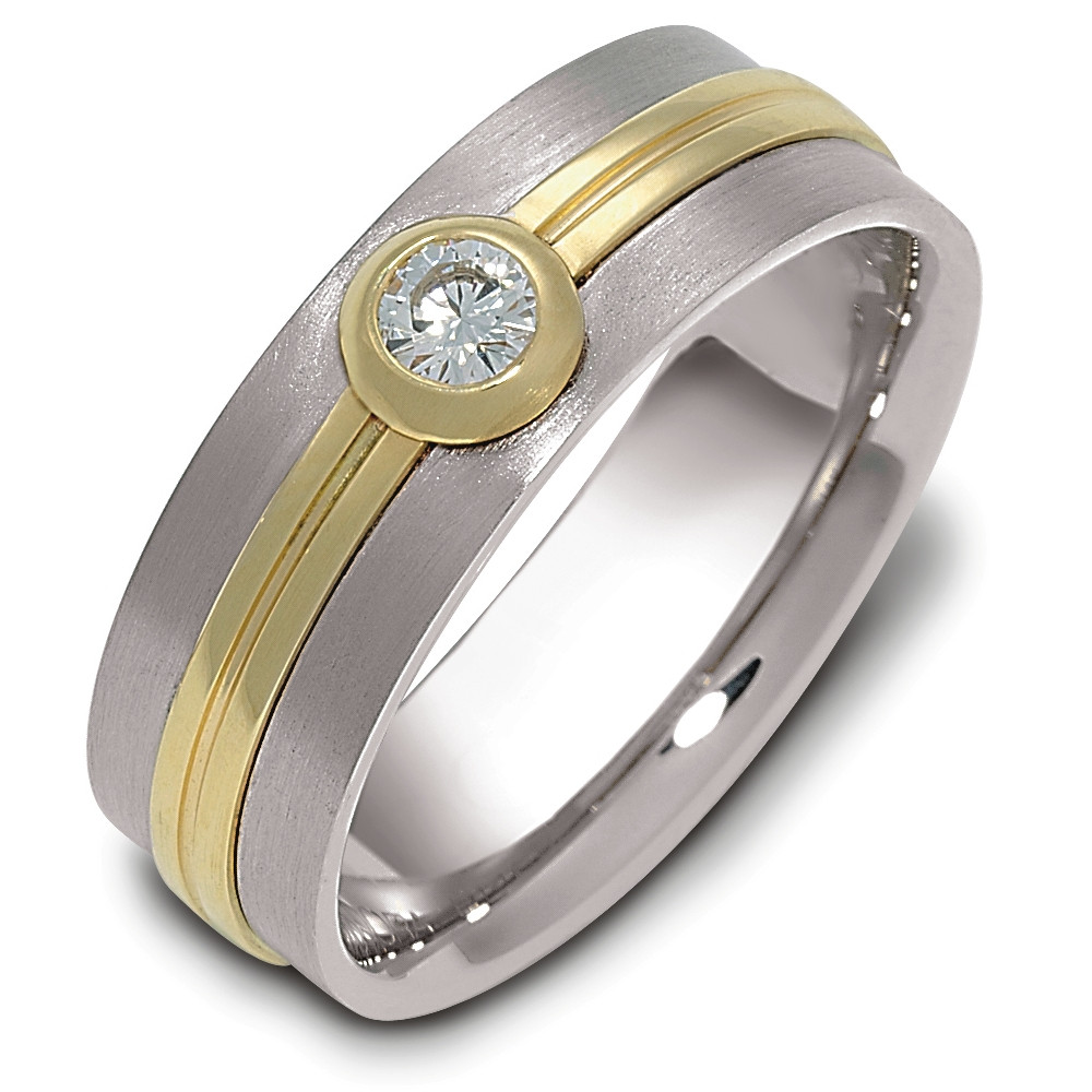 6mm Designer Two-Tone 14 Karat Gold Diamond Comfort Fit Wedding Band Ring
