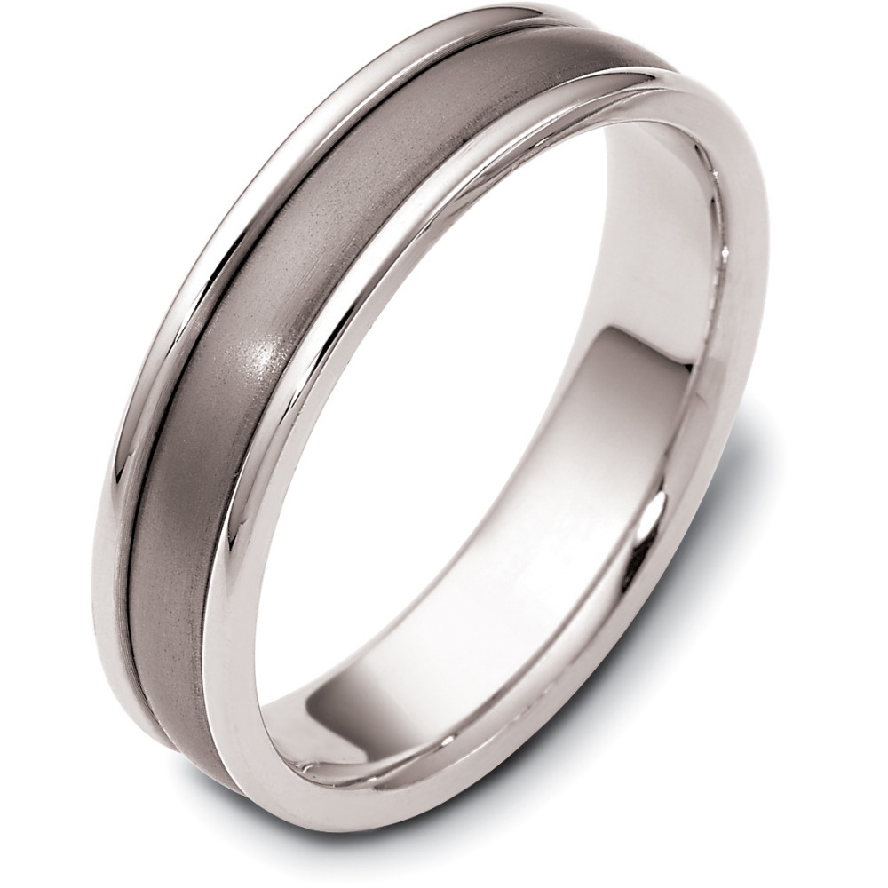 Enjoy the high quality and stylish appeal of this titanium & white gold wedding band. Measuring 6mm wide, this comfort fit wedding band is definitely an eye catcher. The ultimate in craftmanship and quality. NOTE: This wedding band is custom made to order. Therefore please allow 8-10 business days to manufacture before shipment. This ring is also available in a variation of metals, colors & widths. Available metals include all gold types, platinum, palladium, titanium and steel. Please contact customer service with any questions, for a free ring sizer or any special order requests.