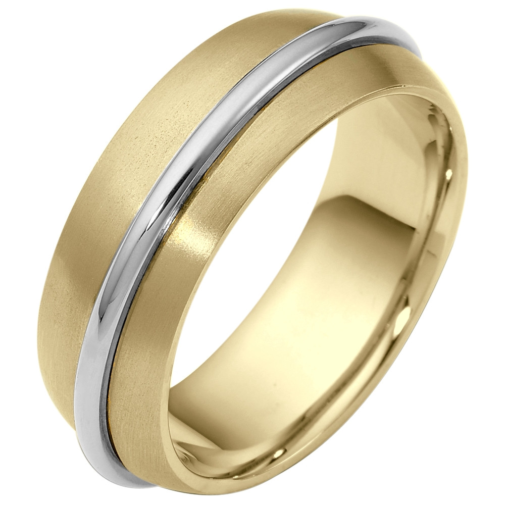 7.5mm Traditional 14 Karat Two-Tone Gold Comfort Fit Wedding Band Ring