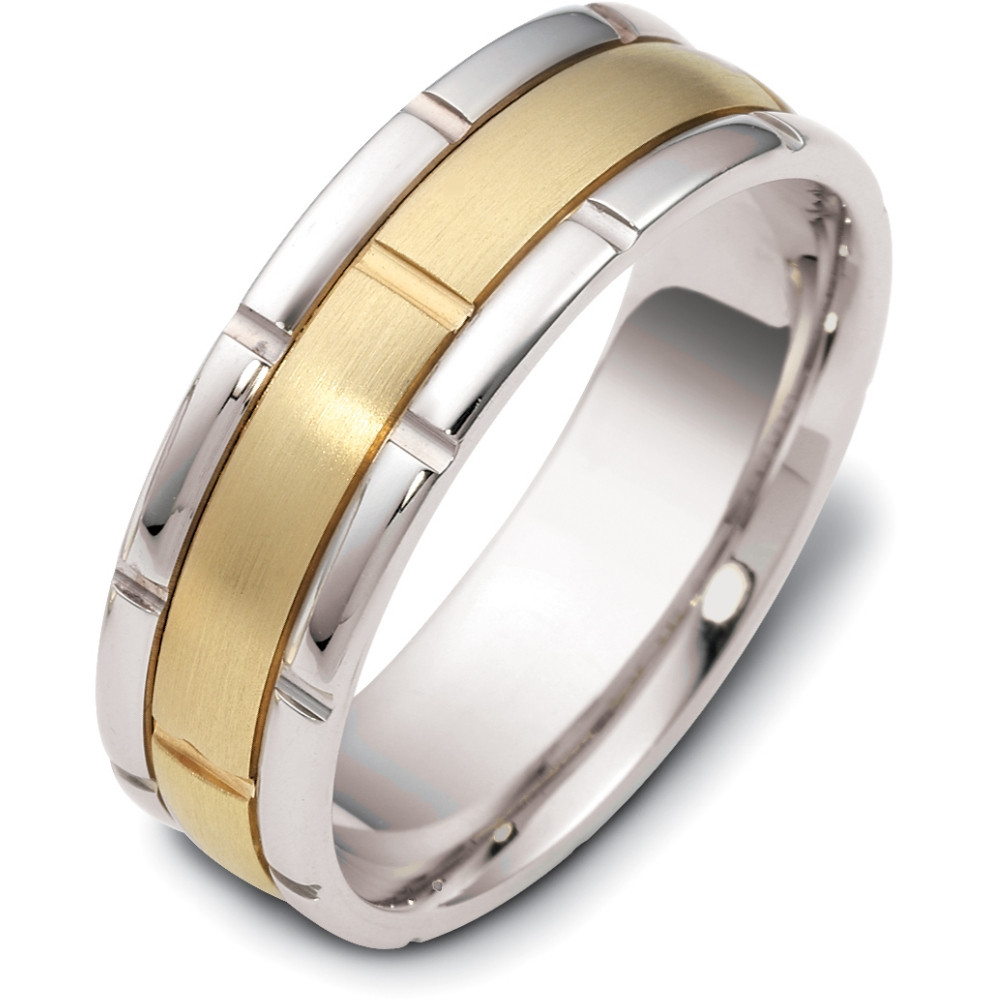 Enjoy the masterful smooth design of this beautifully detailed titanium and yellow gold band. Measuring 7mm wide, this comfort fit band is the perfect blend of style and sophistication. The ultimate in craftmanship and quality. NOTE: This wedding band is custom made to order. Therefore please allow 8-10 business days to manufacture before shipment. This ring is also available in a variation of metals, colors & widths.