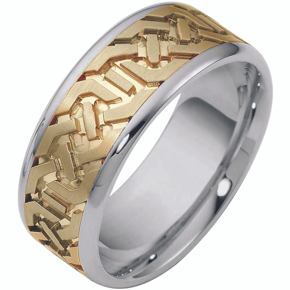 8.5mm Multi Texture Two-Tone 14 Karat Gold Comfort Fit Wedding Band Ring
