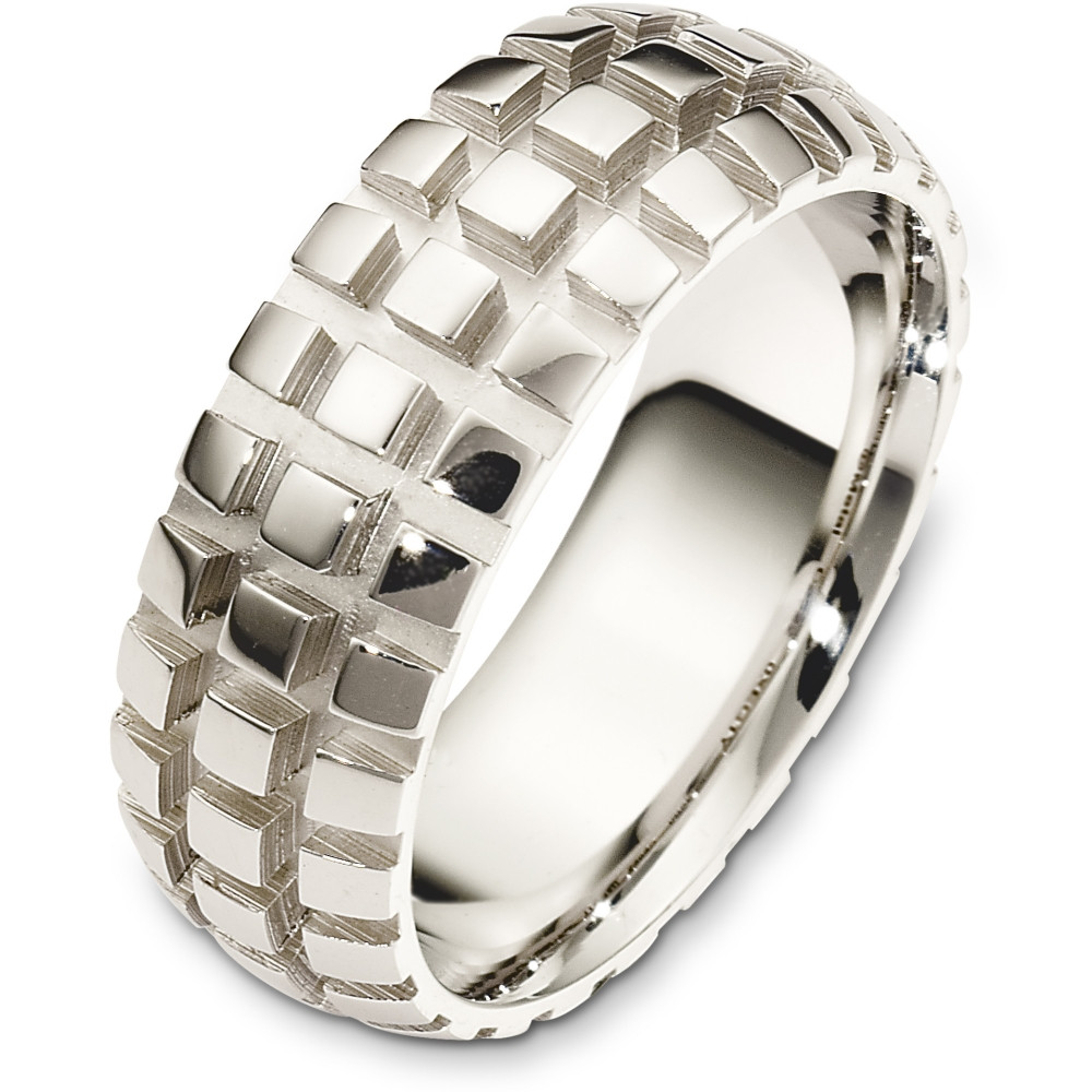 Enjoy the masterful smooth design of this beautifully detailed white gold band. Measuring 8mm wide, this comfort fit band is the perfect blend of style and sophistication. The ultimate in craftmanship and quality. NOTE: This wedding band is custom made to order. Therefore please allow 5-7 business days to manufacture before shipment. Available in a variation of metals, colors & widths. Available metals include all gold types, platinum, palladium, titanium and steel. Please contact customer service with any questions, for a free ring sizer or any special order requests.