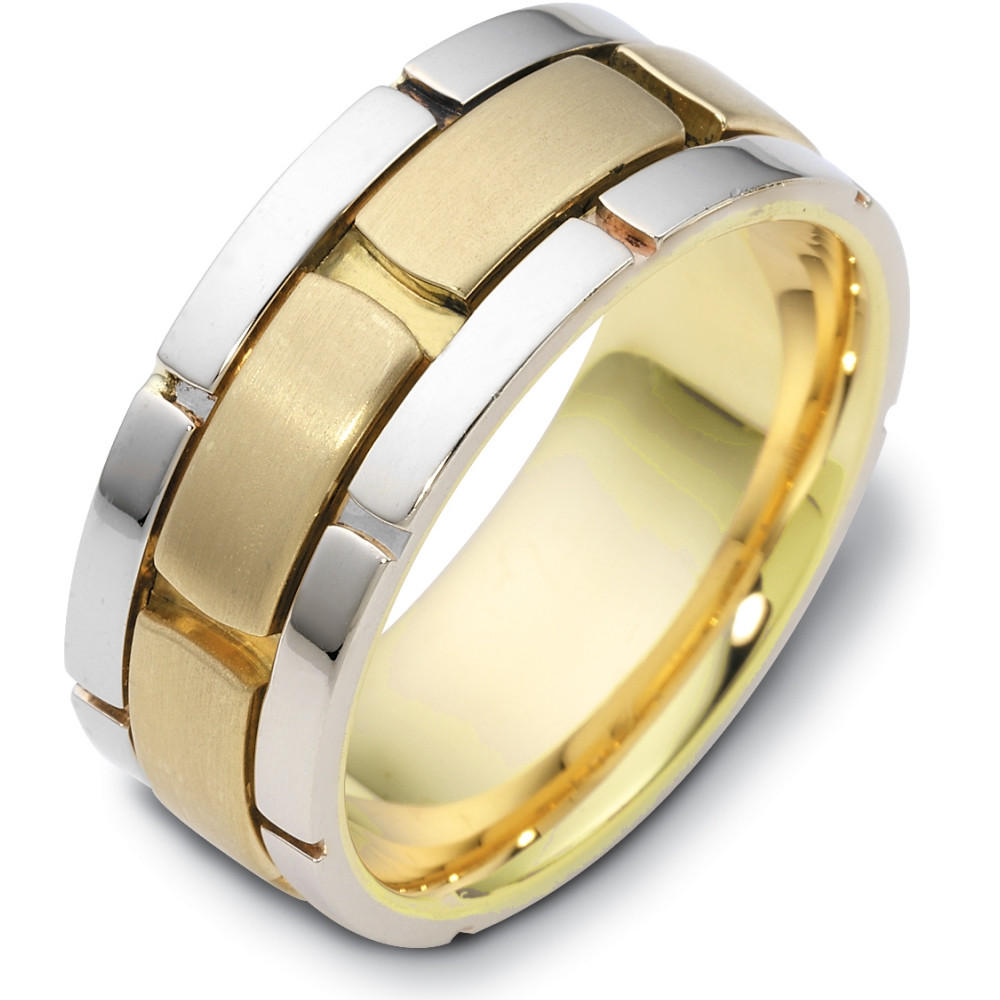 Enjoy the exquisite link design of this beautifully detailed high polish & satin finish band. Measuring 9mm wide, this comfort fit band is the perfect blend of style and tradition. The ultimate in craftmanship and quality. NOTE: This designer wedding band is custom made to order. Therefore please allow up to 2 weeks to manufacture before shipment. For rush shipments please contact customer service. This ring is also available in a variation of metals, colors & widths. Available metals include all gold types, platinum, palladium, titanium and steel. Please contact customer service with any questions, for a free ring sizer or any special order requests.