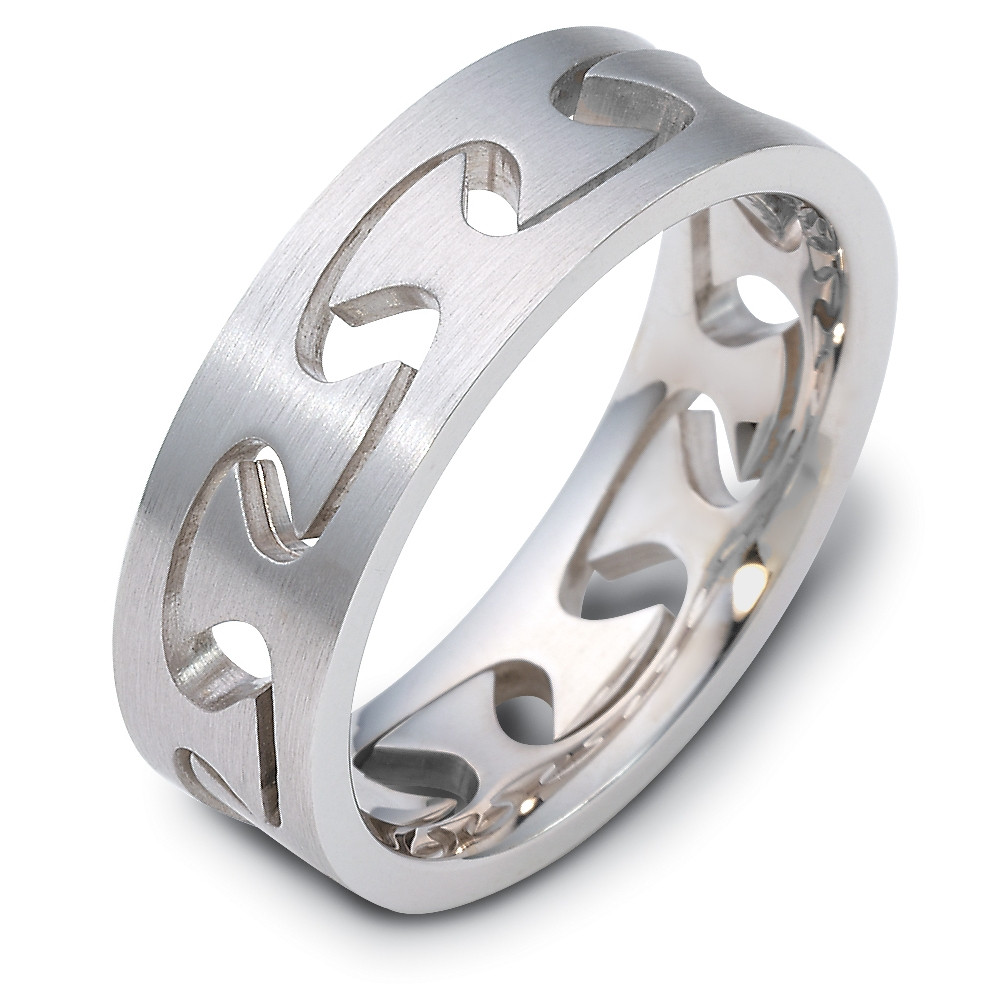 Enjoy the exquisite design of this beautifully detailed carved wave style band. Measuring 6mm wide, this comfort fit band is definitely an eye catcher. The ultimate in craftmanship and quality. NOTE: This designer wedding band is custom made to order. Therefore please allow up to 2 weeks to manufacture before shipment. For rush shipments please contact customer service. This ring is also available in a variation of metals, colors & widths. Available metals include all gold types, platinum, palladium, titanium and steel. Please contact customer service with any questions, for a free ring sizer or any special order requests.