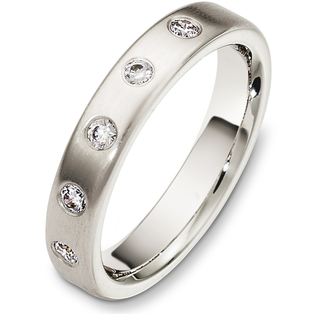 This designer white gold band is definitely a masterpiece. 5 sparkling SI clarity, GH color brilliant diamonds totaling 0.20 carats adorn the band. Measuring 4mm wide, this comfort fit band will definitely be the talk of the town. The ultimate in craftmanship and quality. NOTE: This wedding band is custom made to order. Therefore please allow 8-10 business days to manufacture before shipment. If you have any questions, comments or would like to receive a free ring sizer, please email customer service