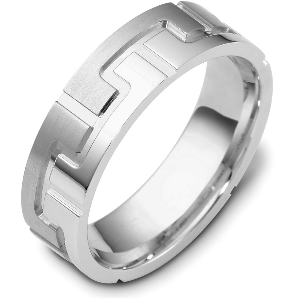 Designer 6.5mm 14 Karat White Gold Greek Key Wedding Band Ring