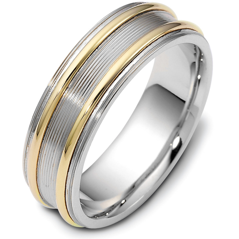 Enjoy the masterful smooth design of this beautifully detailed two-tone gold designer band. Measuring 6.5mm wide, this comfort fit band is the perfect blend of style and sophistication. The ultimate in craftmanship and quality. NOTE: This wedding band is custom made to order. Therefore please allow 8-10 business days to manufacture before shipment. This ring is also available in a variation of metals, colors & widths.