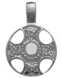 This high polish Celtic shield pendant is made of genuine sterling silver and measures 0.64 inches (16.2mm) wide and 1 inch (25mm) high. It is available with a 16 inch, 18 inch, 20 inch, 22 inch or 24 inch cable chain.