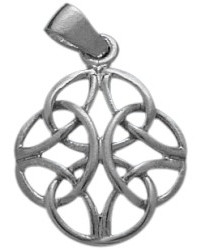 This high polish Celtic Knot pendant is made of genuine sterling silver and measures 0.7 inches (18mm) wide and 0.9 inches (23mm) high. It is available with a 16 inch, 18 inch, 20 inch, 22 inch or 24 inch cable chain.