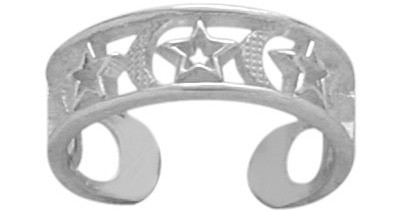 This beautiful, one size fits all moon and stars toe ring is crafted of genuine sterling silver. The ring measures 5.1mm or 0.20 inches in width. A perfect addition to your collection.