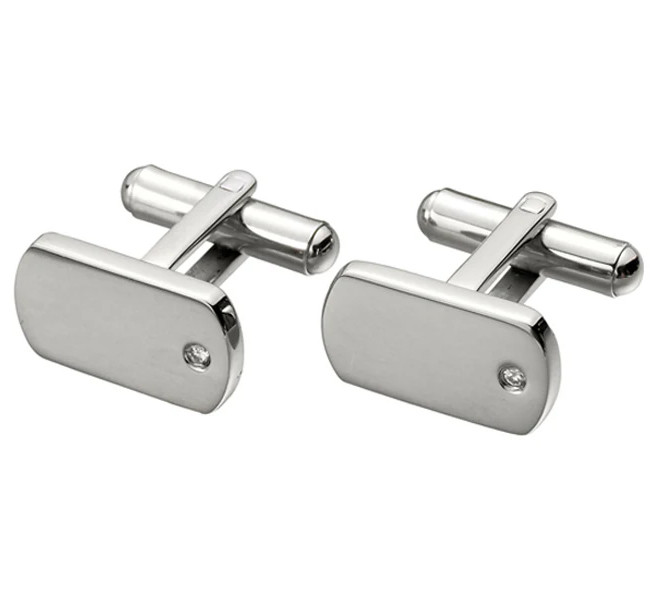 Add an artistic touch to your apparel accessories with this pair of steel and cubic zirconia cufflinks. Measuring 0.7 inches or 17.9mm wide and 0.4 inches or 9.76mm high. These high polish cufflinks are easily secured with a swivel snap.