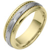 7mm Woven Style Two-Tone 14 Karat Gold Comfort Fit Wedding Band Ring
