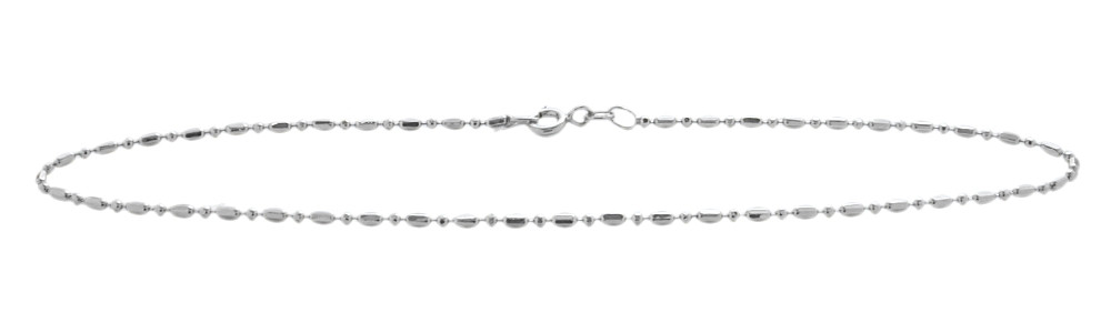 This bead style anklet is crafted of genuine sterling silver. The anklet measures 0.05 inches (1.3mm) in width and is available in your choice of 9 inches or 10 inches in length.