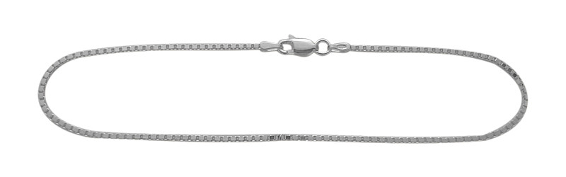 This box style anklet is crafted of genuine sterling silver. The anklet measures 0.05 inches (1.4mm) in width and is available in your choice of 9 inches or 10 inches in length.