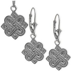 This 4 Point Knot earrings and pendant set is crafted in genuine sterling silver. The pendant measure 14mm or 0.6 inches in width and 22.5mm or 0.9 inches in height and the earrings measure 14mm or 0.6 inches in width and 32.7mm or 1.3 inches in height. The pendant is available with your choice of a 16 inch, 18 inch, 20 inch, 22 inch or 24 inch chain.