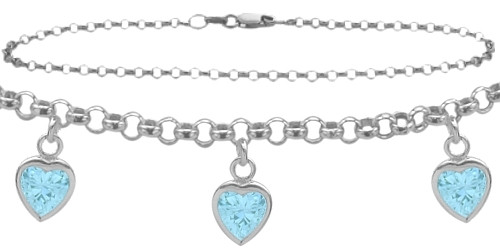 This sterling silver cable anklet measures 0.11 inches (2.4mm) in width. The 3 heart charms measure 6mm wide and 6mm in height. This anklet is available in your choice of 9 inches or 10 inches in length. Available stones: Genuine Garnet, Genuine Amethyst, Created Aquamarine, Genuine White Topaz, Created Emerald, Created Ruby, Genuine Peridot, Created Sapphire, Created Tourmaline, Genuine Citrine and Genuine Blue Topaz.