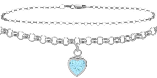 This sterling silver cable anklet measures 0.11 inches (2.4mm) in width. The heart charm measures 6mm wide and 6mm in height. This anklet is available in your choice of 9 inches or 10 inches in length. Available stones: Genuine Garnet, Genuine Amethyst, Created Aquamarine, Genuine White Topaz, Created Emerald, Created Ruby, Genuine Peridot, Created Sapphire, Created Tourmaline, Genuine Citrine and Genuine Blue Topaz.