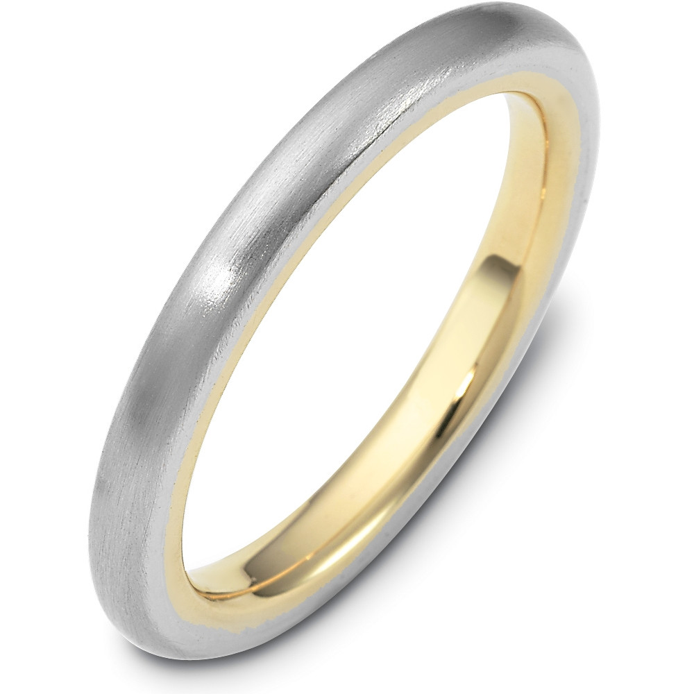 Enjoy the masterful design of this traditional wedding band with a twist on detail. Measuring 3mm wide, this comfort fit band displays white gold on the outside and yellow gold both on the sides and inside. The perfect blend of tradition and style is The ultimate in craftmanship and quality. NOTE: This wedding band is custom made to order. Therefore please allow 8-10 business days to manufacture before shipment. This ring is also available in a variation of metals, colors & widths. Available metals include all gold types, platinum, palladium, titanium and steel. Please contact customer service with any questions, for a free ring sizer or any special order requests.
