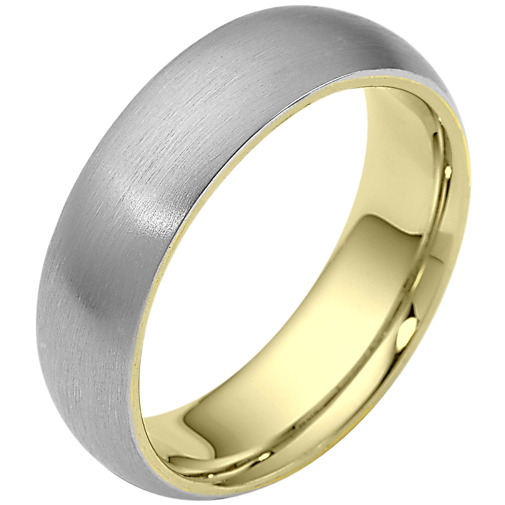 Enjoy the masterful smooth design of this beautifully detailed two-tone gold designer band. Measuring 7mm wide, this comfort fit band is the perfect blend of style and sophistication. The ultimate in craftmanship and quality. NOTE: This wedding band is custom made to order. This ring is also available in a variation of metals, colors & widths. Available metals include all gold types, platinum, palladium, titanium and steel. Please contact customer service with any questions, for a free ring sizer or any special order requests.