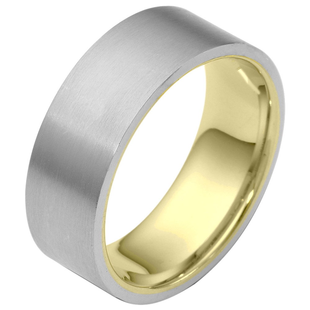 Traditional 8mm Flat Comfort Fit 14 Karat Two-Tone Gold Wedding Band Ring